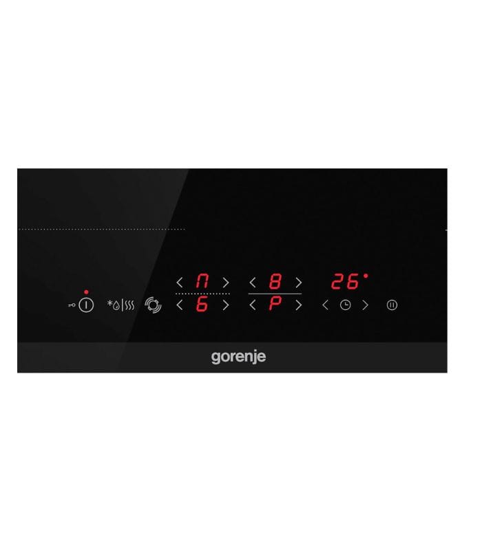 Αυτόνομη κεραμική εστία Gorenje με 4+2 ζώνες μαγειρέματος και ενδείξεις υπολοίπου θερμότητας για κάθε ζώνη.