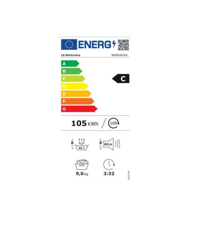 Στεγνωτήριο Ρούχων LG RH90V9JV2N 9 kg C C (ΠΡΩΗΝ Α++++ 105kWh/100) με Αντλία Θερμότητας