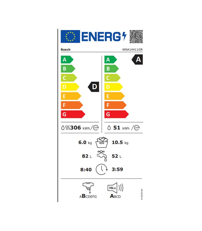 Bosch WNA14411GR Πλυντήριο-Στεγνωτήριο Ρούχων 10,5kg/6kg με Ατμό 1400 Στροφών