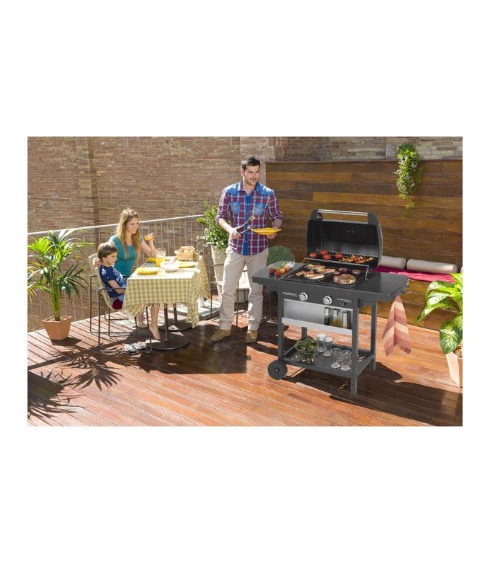 Με την εύχρηστη ψησταριά 2 Series Classic L μπορείτε να χαρείτε στιγμές διασκέδασης και γευστικών απολαύσεων με τους αγαπημένους σας. Η παρουσία της προσφέρει μεγαλύτερη γοητεία στον κήπο ή την βεράντα σας.