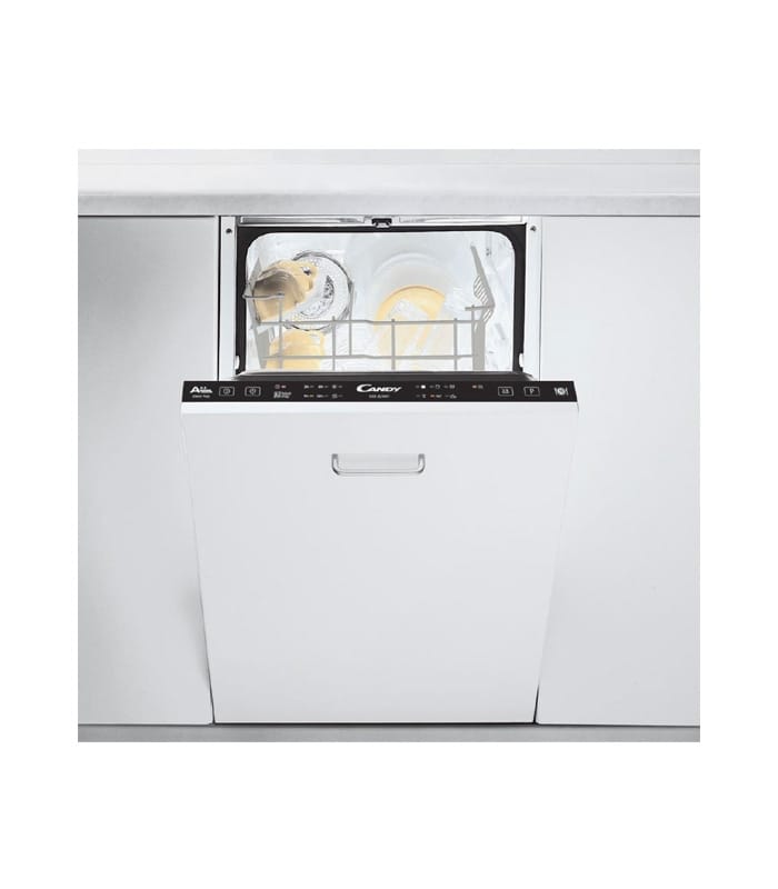 Πλυντήριο πιάτων της Candy με χωρητικότητα για 10 σερβίτσια, που μπορεί να εξυπηρετήσει τις ανάγκες μιας τετραμελούς οικογένειας.