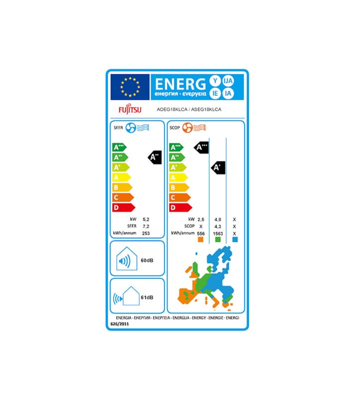 Fujitsu ASEG18KLCA/AOEG18KLCA Κλιματιστικό Inverter 18000 BTU A++/A+