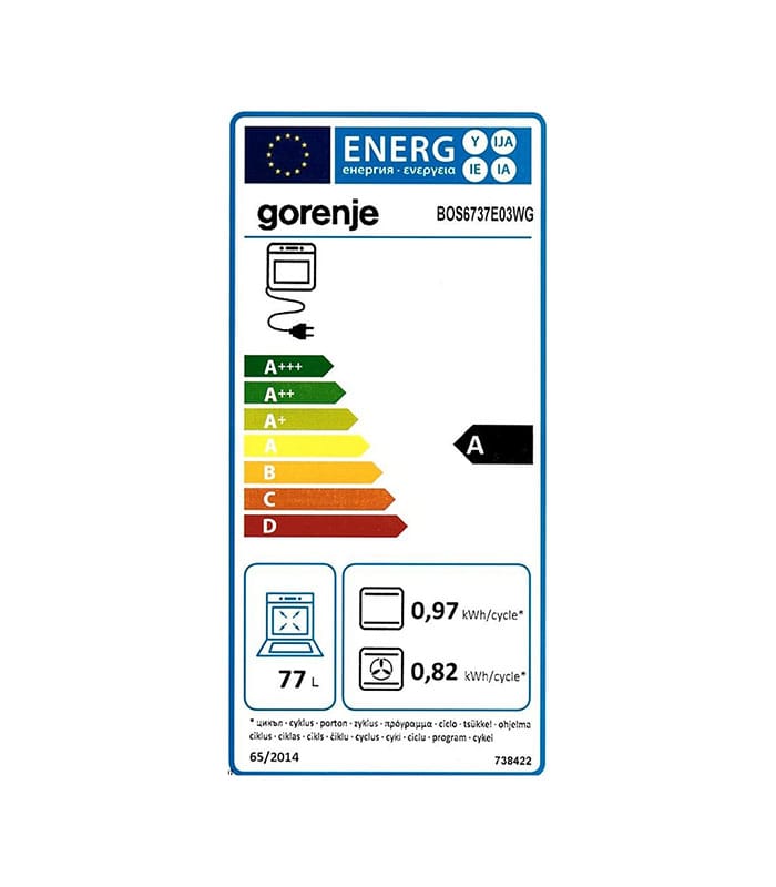 Φούρνος άνω πάγκου της Gorenje με χωρητικότητα 77 λίτρα, η οποία θεωρείται ικανοποιητική για μια μέση οικογένεια.