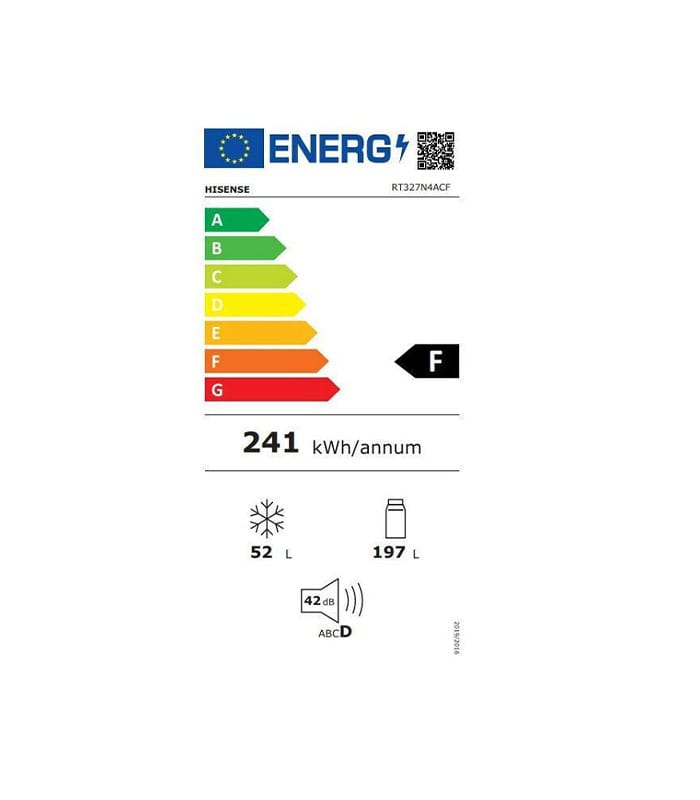 Ψυγείο δίπορτο της Hisense με χωρητικότητα 325 λίτρα, που μπορεί να καλύψει άνετα τις ανάγκες ενός ζευγαριού ή και μιας οικογένειας 3 ατόμων.