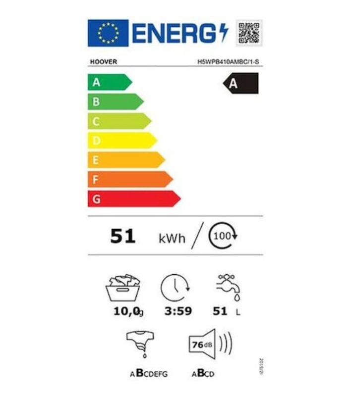 Hoover H5WPB410AMBC/1-S Πλυντήριο Ρούχων 10kg 1400 Στροφών WiFi