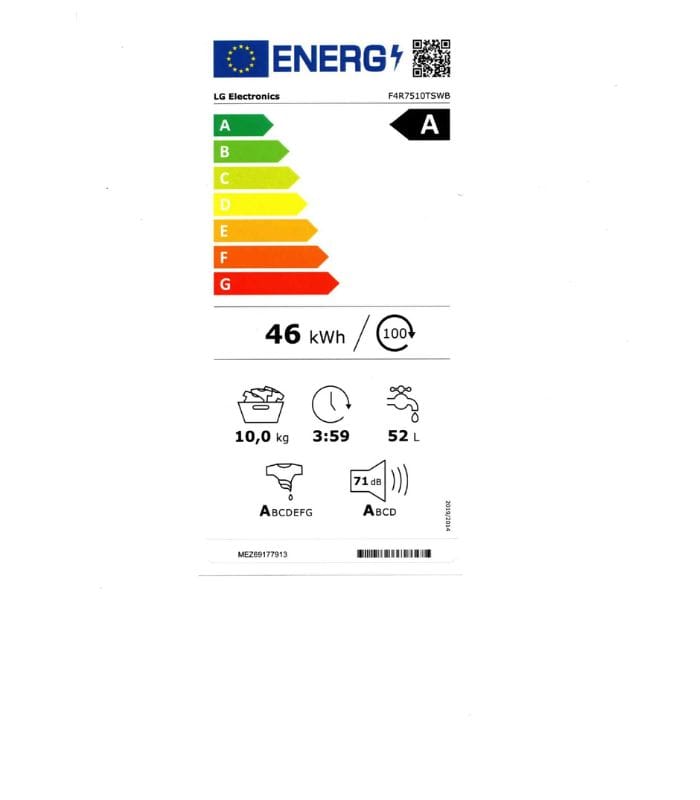 Πλυντήριο Ρούχων Ατμού F4R7510TSWB της LG, Tεχνολογία Ατμού Steam™ και AI DD με Smart Diagnosis & WiFi, TurboWash™360˚(39′) και δυνατότητα προσθήκης ρούχου κατά τη πλύση. Χωρητικότητας 10kg και Ενεργειακή Κλάση Α.
