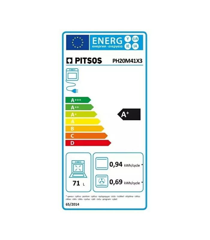 Φούρνος άνω πάγκου της Pitsos με χωρητικότητα 71 λίτρα, η οποία θεωρείται ικανοποιητική για μια μέση οικογένεια.