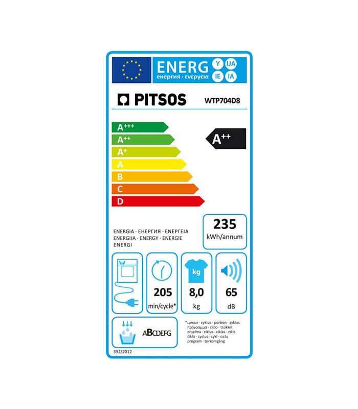 Pitsos WTP704D8 Στεγνωτήριο Ρούχων 8kg A++ με Αντλία Θερμότητας