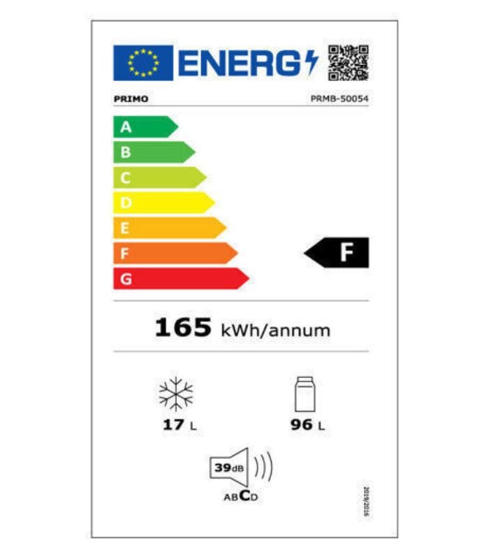 Το PRIMO PRMB-50054 συνδυάζει ενεργειακή απόδοση κλάσης F με ετήσια κατανάλωση 165 kWh, προσφέροντας οικονομία και φιλικότητα προς το περιβάλλον. Η κλιματική κλάση N/ST διασφαλίζει αξιόπιστη λειτουργία σε θερμοκρασίες από 16°C έως 38°C, καθιστώντας το ιδανικό για διάφορες συνθήκες. Με επίπεδο θορύβου μόλις 39dB, λειτουργεί αθόρυβα, εξασφαλίζοντας άνεση στον χώρο σας. Οι ρυθμιζόμενες μπροστινές βάσεις προσφέρουν μεγαλύτερη ευκολία στη χρήση και τη συντήρηση.