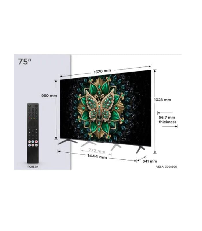 Τηλεόραση TCL 75’’ 4K QD-Mini LED with Google TV and 144Hz Motion Clarity Pro , Dolby Atmos & ONKYO Sound system .