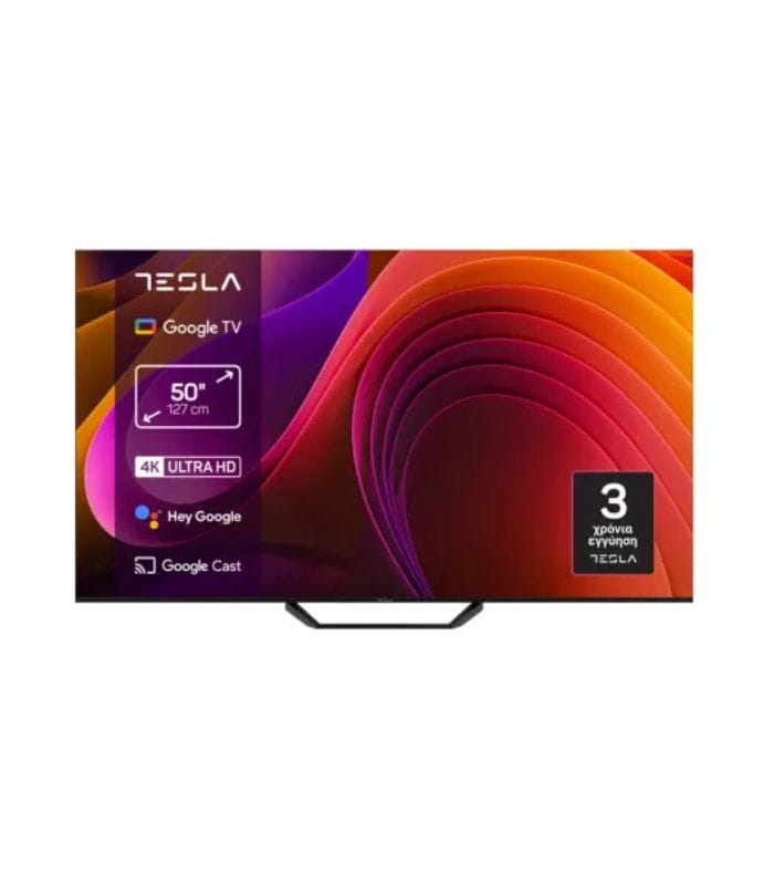 Η Tesla LED TV 50E655BUS είναι μια έξυπνη τηλεόραση 50” με ανάλυση 4K UHD (3840×2160), τεχνολογία DLED και υποστήριξη Dolby Vision και HDR για εντυπωσιακή εικόνα. Διαθέτει Google TV λειτουργικό, με εφαρμογές όπως Netflix, YouTube και Disney+. Περιλαμβάνει Dolby Atmos, Bluetooth 5.1, WiFi διπλής ζώνης και 3 HDMI θύρες. Υποστηρίζει Chromecast, φωνητικές εντολές και Google Assistant. Ο ήχος προσφέρεται από δύο ηχεία 12W, ενώ ο δυναμικός λόγος αντίθεσης φτάνει το 5000:1.